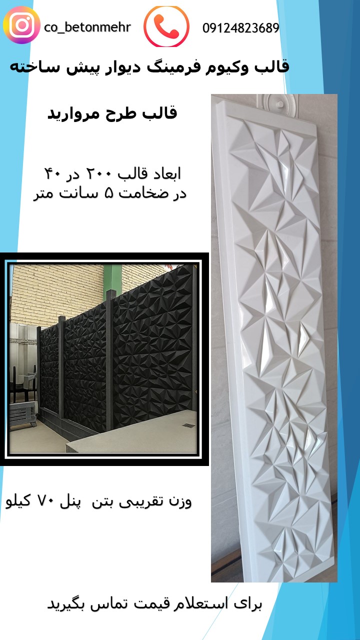 قالب تولید دیوار پیش ساخته بتنی هر طرح 2700 میلیون تومان به ابعاد ۲ متر در ۴۰ سانت به ضخامت ۵ سانت